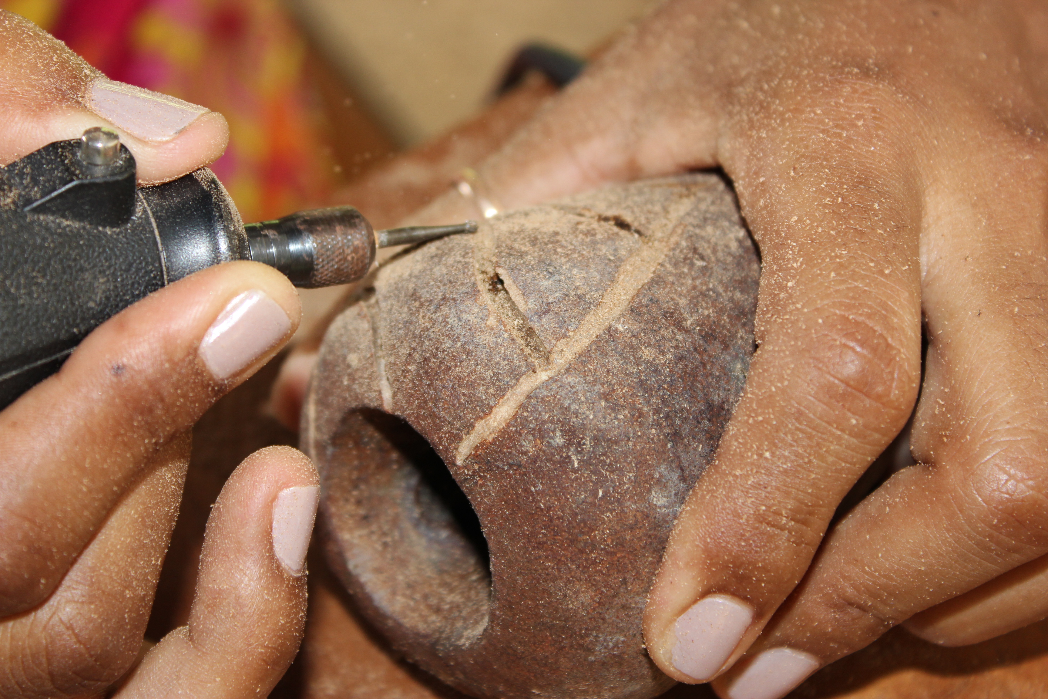 See above images of one of the materials collected in the Forest and the work at the workshop (picture from Vanessa Gama). Check out more photographs in the albums Making Of and Objects on our Facebook page.