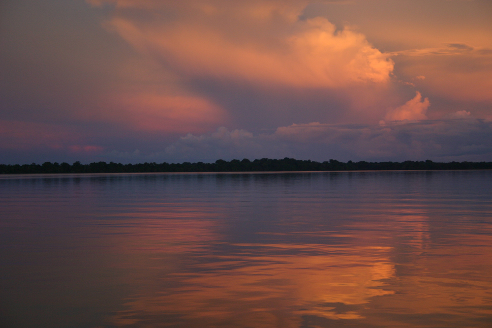 Depois de 6 dias em Manaus, finalmente chegamos em Novo Airão. Passamos rapidamente pela cidade e em seguida fomos levadas de barco ao hotel que está nos apoiando, Anavilhanas Jungle Lodge. Nesses primeiros 5 minutos de travessia, já pudemos sentir a beleza natural da região: a cor escura e avermelhada das águas do rio Negro e a grande quantidade de ilhas, compridas e com uma massa de vegetação muito vede, densa e alta. Chegando no hotel, a mesma impressão positiva: as instalações construídas como cabanas de madeira, de visual simples e agradável, com materiais naturais; o serviço correto e discreto; e a organização de pequenos detalhes que dão charme ao atendimento. Por exemplo, os quartos são identificados com nomes de animais da fauna amazônica. Na hora das refeições, as mesas do restaurante são reservadas para cada quarto e identificadas por uma pequena escultura em madeira do animal correspondente. Nosso quarto é o tamanduá.