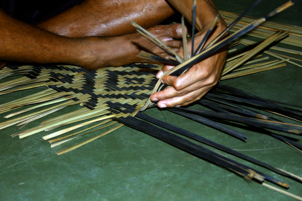 Abaixo imagens do Erivaldo trançando o arumã (AANA) e o jardim de entrada da Fundação Almerinda Malaquias (FAM).