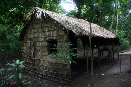 Fizemos a trilha da Sumaúma: 7 km de caminhada pela Floresta Nacional Tapajós (Flona) para ver essa árvore gigante. Dentre as inúmeras espécies vistas, algumas madeiras mais conhecidas da indústria moveleira destacaram-se: Cedro, Jatobá e a própria Sumaúma. Elas impõem-se pelo tamanho e, a julgar pelo impacto que a queda de uma delas provocaria ao redor, é possível imaginar porque muitas madeiras amazônicas têm seu uso proibido. No meio da trilha, vimos uma casa de palha abandonada, é chamada de casa de seringueiro: eles passavam a noite ali quando iam colher látex, tarefa que deve ser feita nas primeiras horas do dia.