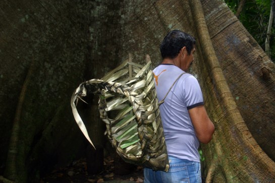 Vimos um objeto que ouvimos falar diversas vezes, chamado paneiro. Ele parece uma mochila e é feito da folha de uma palmeira. É usado pelos trabalhadores da floresta para transportar o que foi colhido ou para as mães carregarem seus bebês. Descobrimos outro objeto similar a ele, o jamaxim, feito com cipó e com uma abertura maior. Além deles, descobrimos a pera, que também tem função de transporte de pequenas cargas, só que com o formato de uma pasta ou bolsa-carteira.