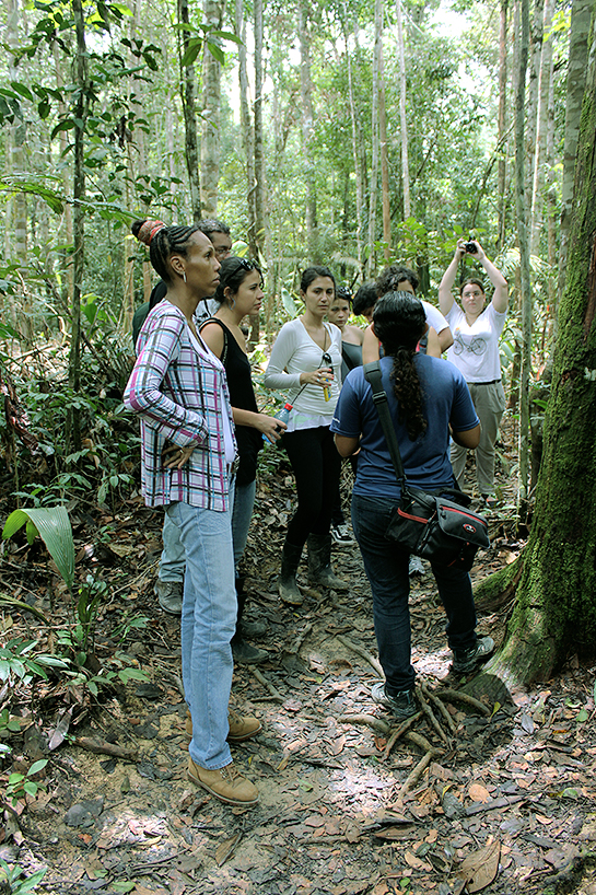 – Visit to the Ducke Reserve, where we saw the “live museum” of the Amazon / MUSA. During this trail, the participants observed in loco various aspects of the forest: materials as “breu branco” (a white and fragrant resin) and shapes as cuias (gourds), mushrooms, trees’ barks, various seeds, etc.